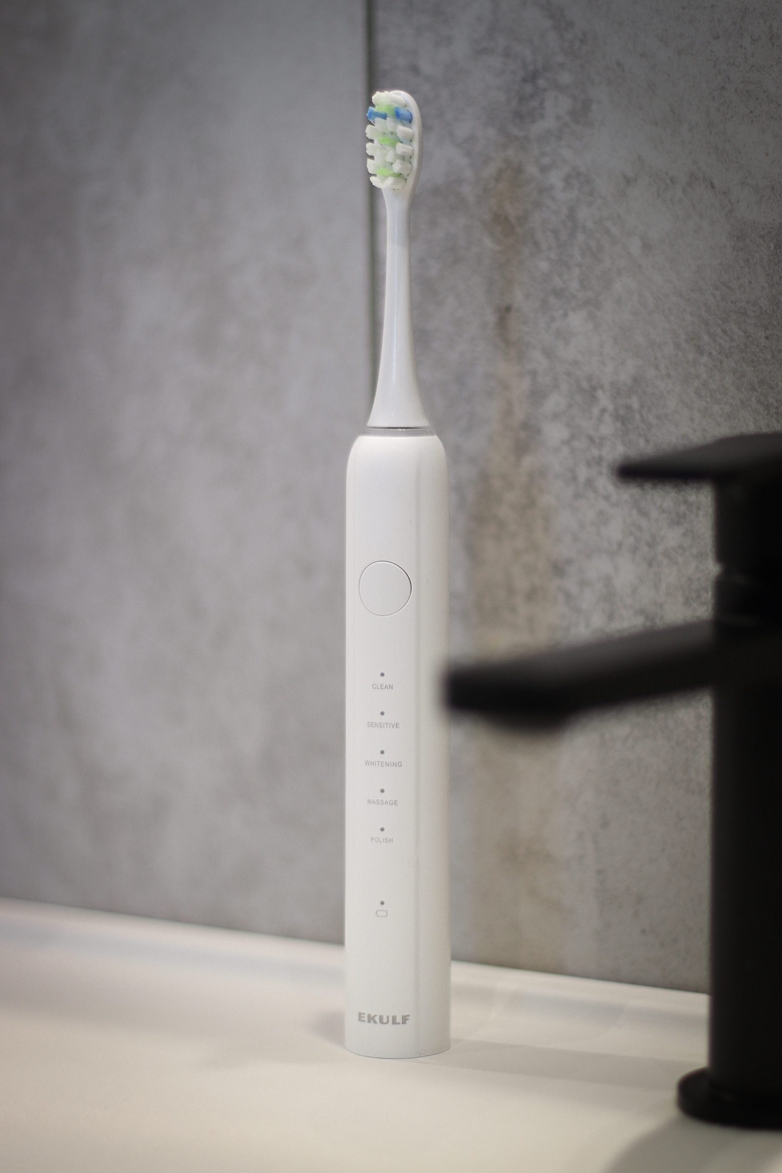EKULF Sonic PowerBrush on tehokas sähköhammasharjamme, joka tuottaa 40 000 värähtelyä minuutissa ja on suunniteltu tarjoamaan tehokas hampaiden puhdistus. Pieni, ovaalinmuotoinen harjaspää ulottuu vaikeasti saavutettaviin alueisiin hampaiden väleissä ja poistaa hellävaraisesti plakin. Äänivärähtely auttaa myös hieromaan ikeniä, mikä lisää verenkiertoa ja edistää ikenien terveyttä.